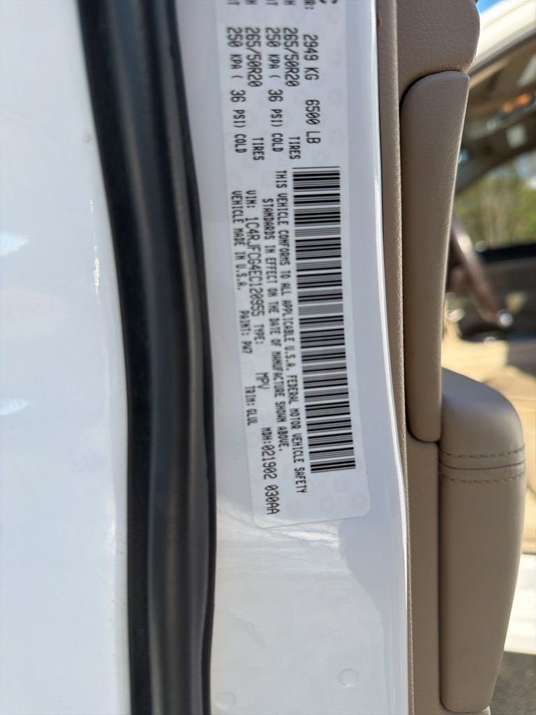 Bright White Clearcoat 2014 Jeep Grand Cherokee Overland 8-Speed Automatic 3.6L V6 Flex Fuel 24V VVT 4WD Features, 4WD, 20 x 8.0 Aluminum Wheels, Auto-leveling suspension, High intensity discharge headlights: Bi-Xenon, Power Liftgate, Power moonroof, Quick Order Package 22P, Radio: Uconnect 8.4AN AM/FM/SXM/HD/BT/NAV, Security system.
