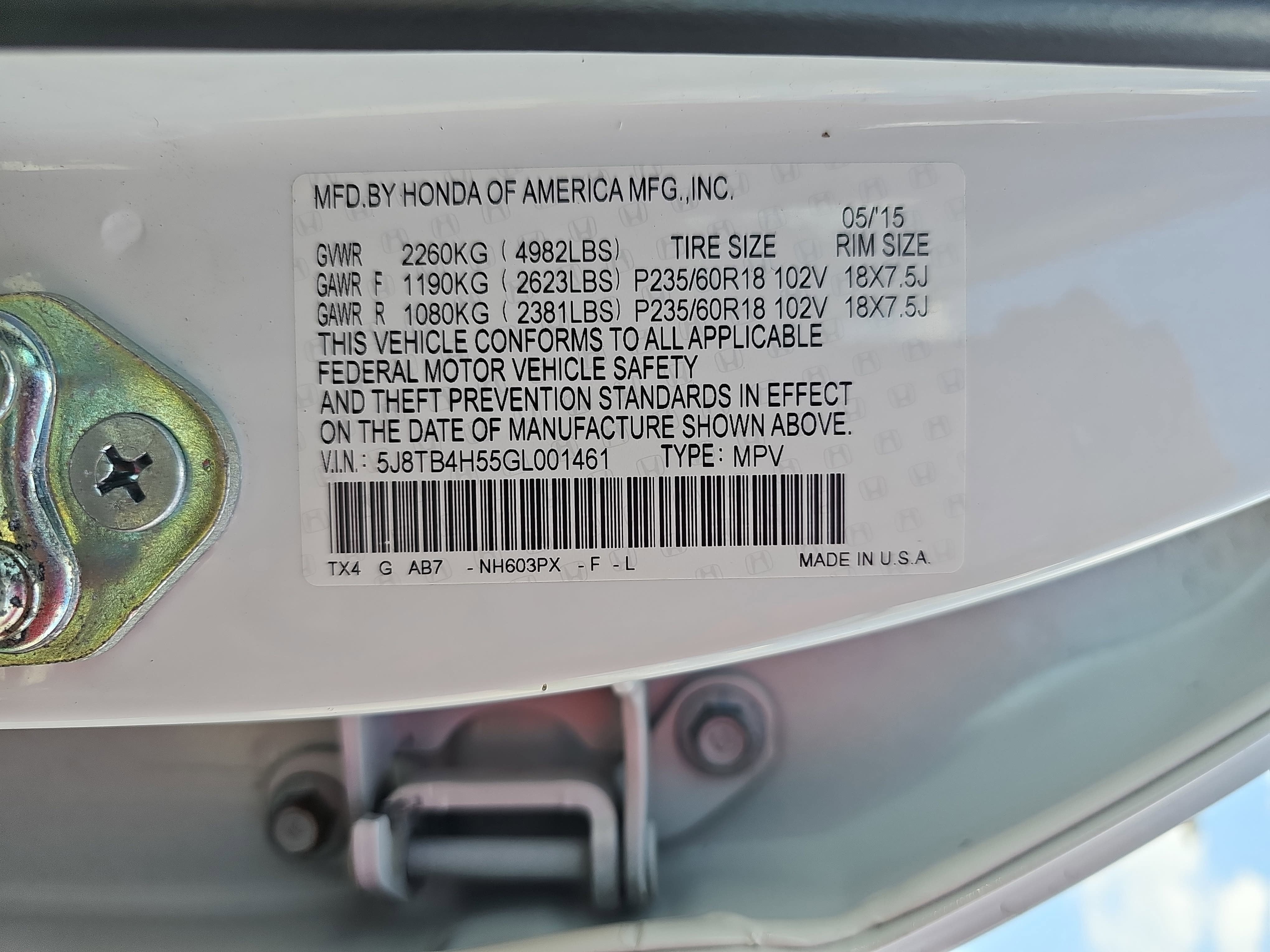 - Rear Tire Size: P235/60VR18