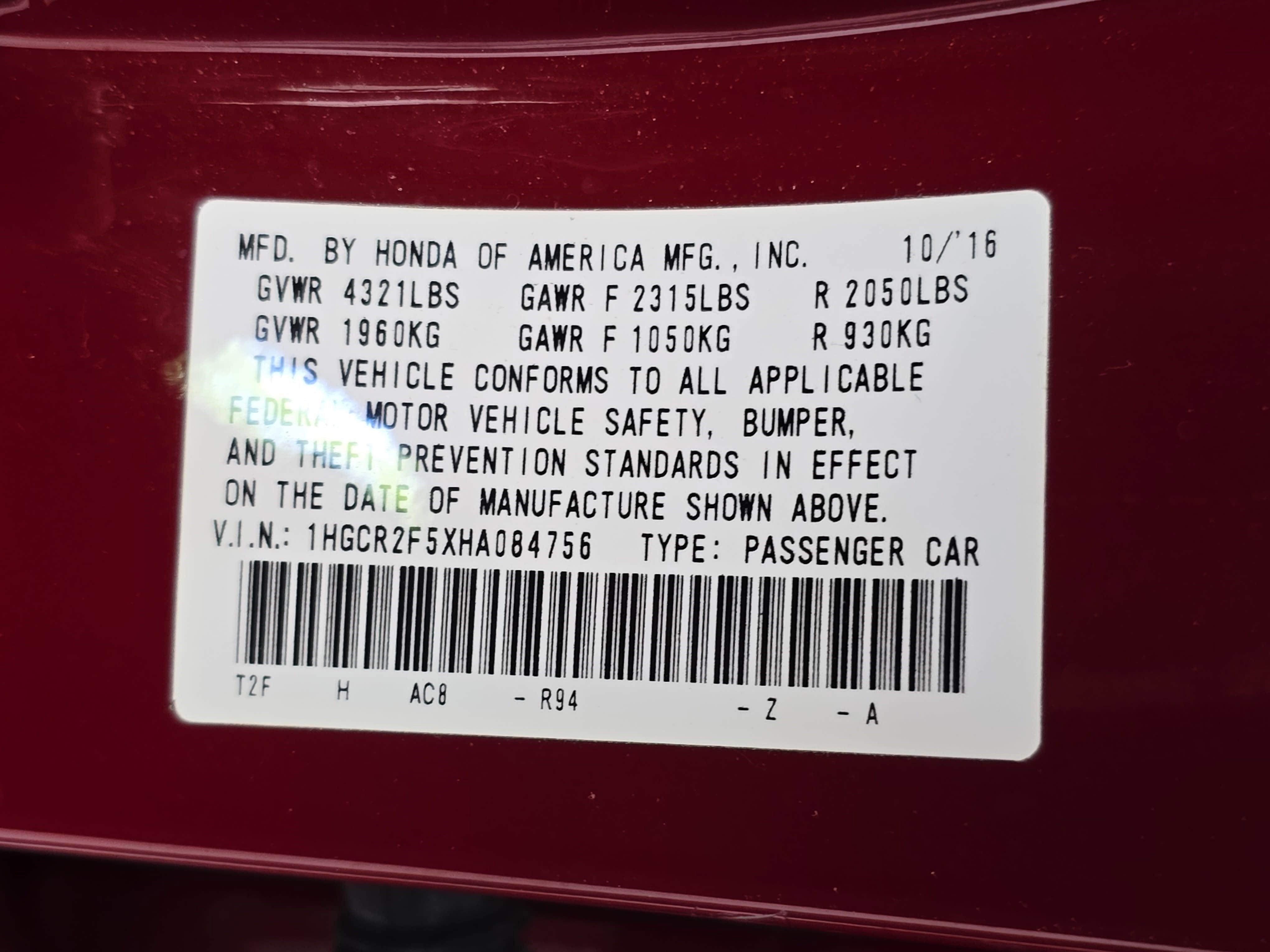 1HGCR2F5XHA084756