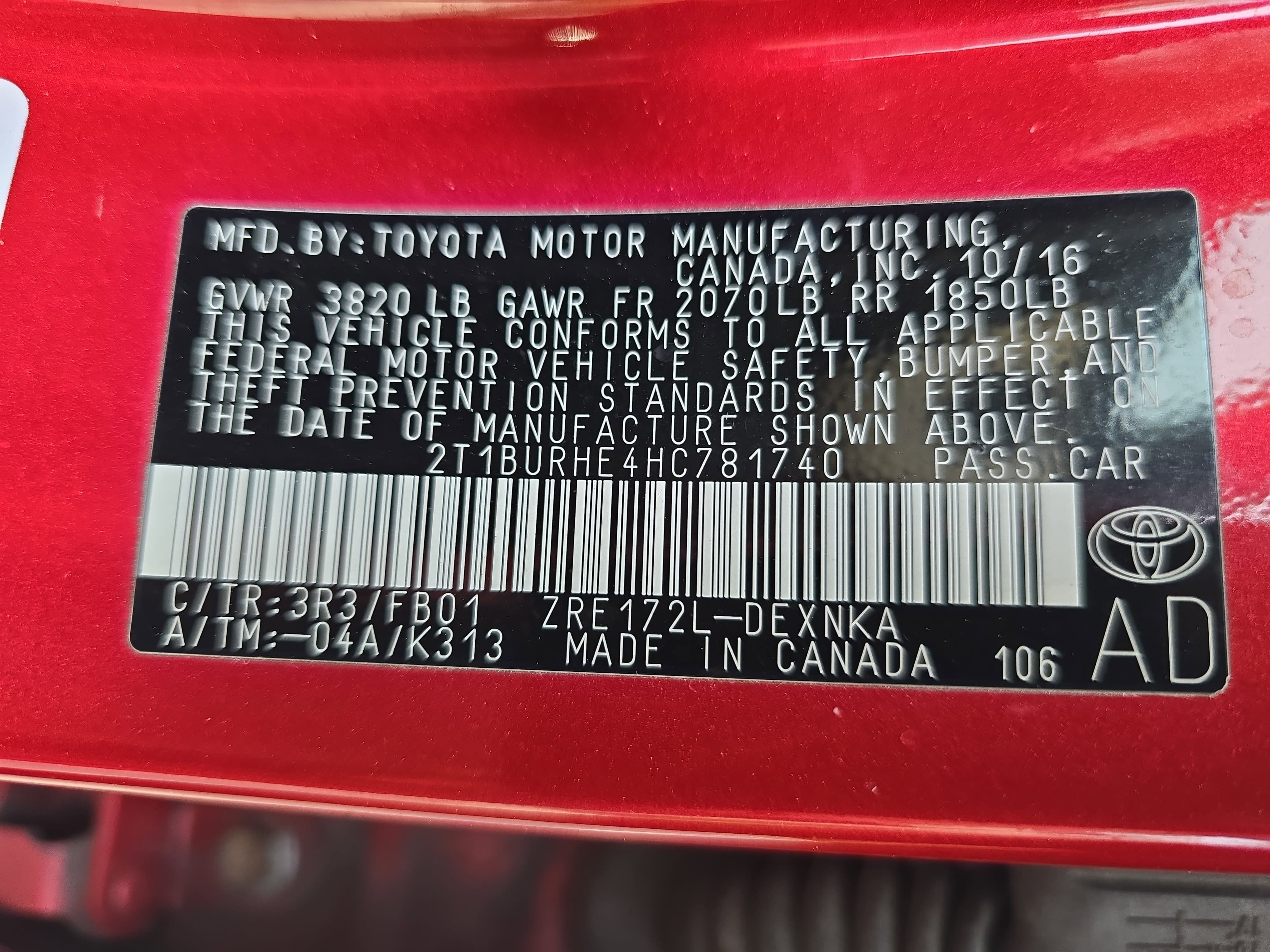 - Vehicle Name: Toyota Corolla