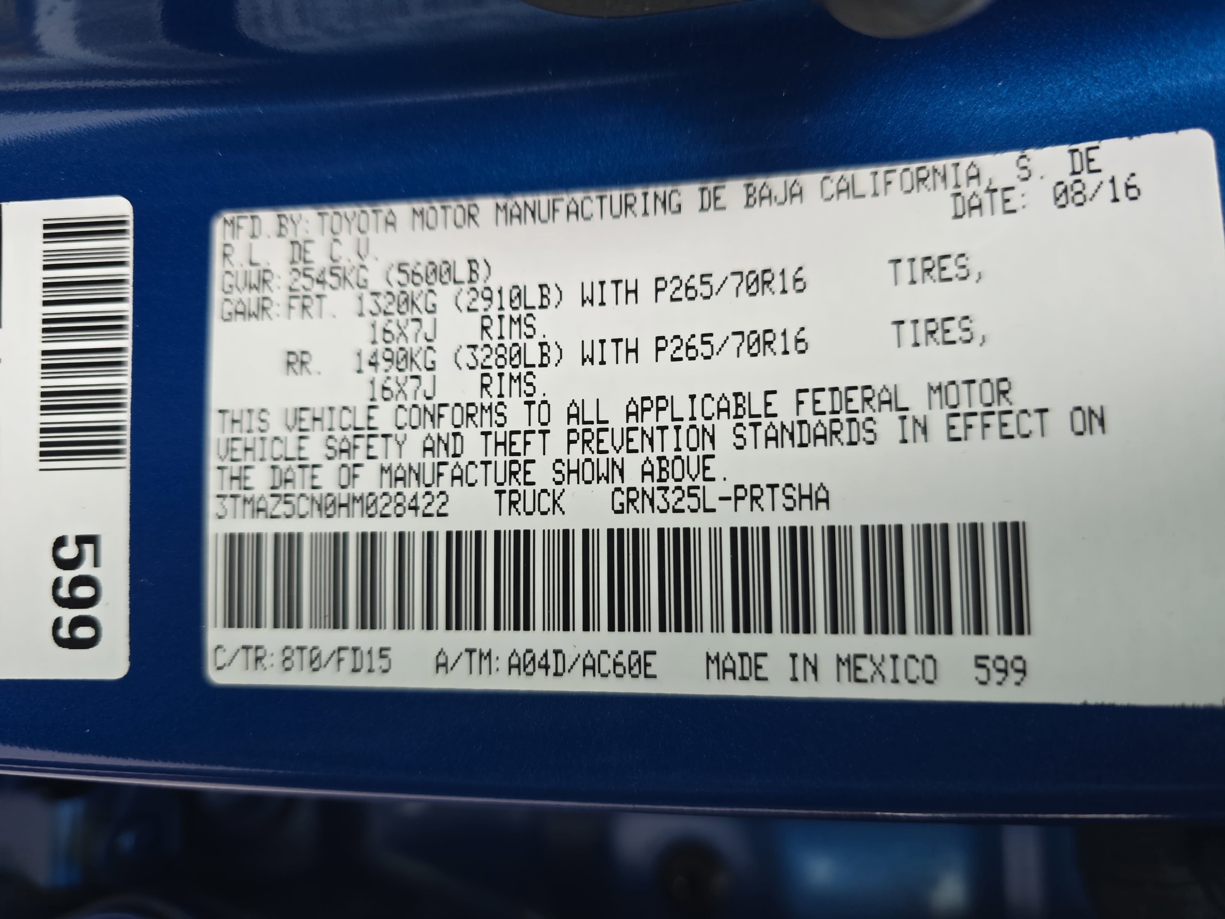 - Vehicle Name: Toyota Tacoma