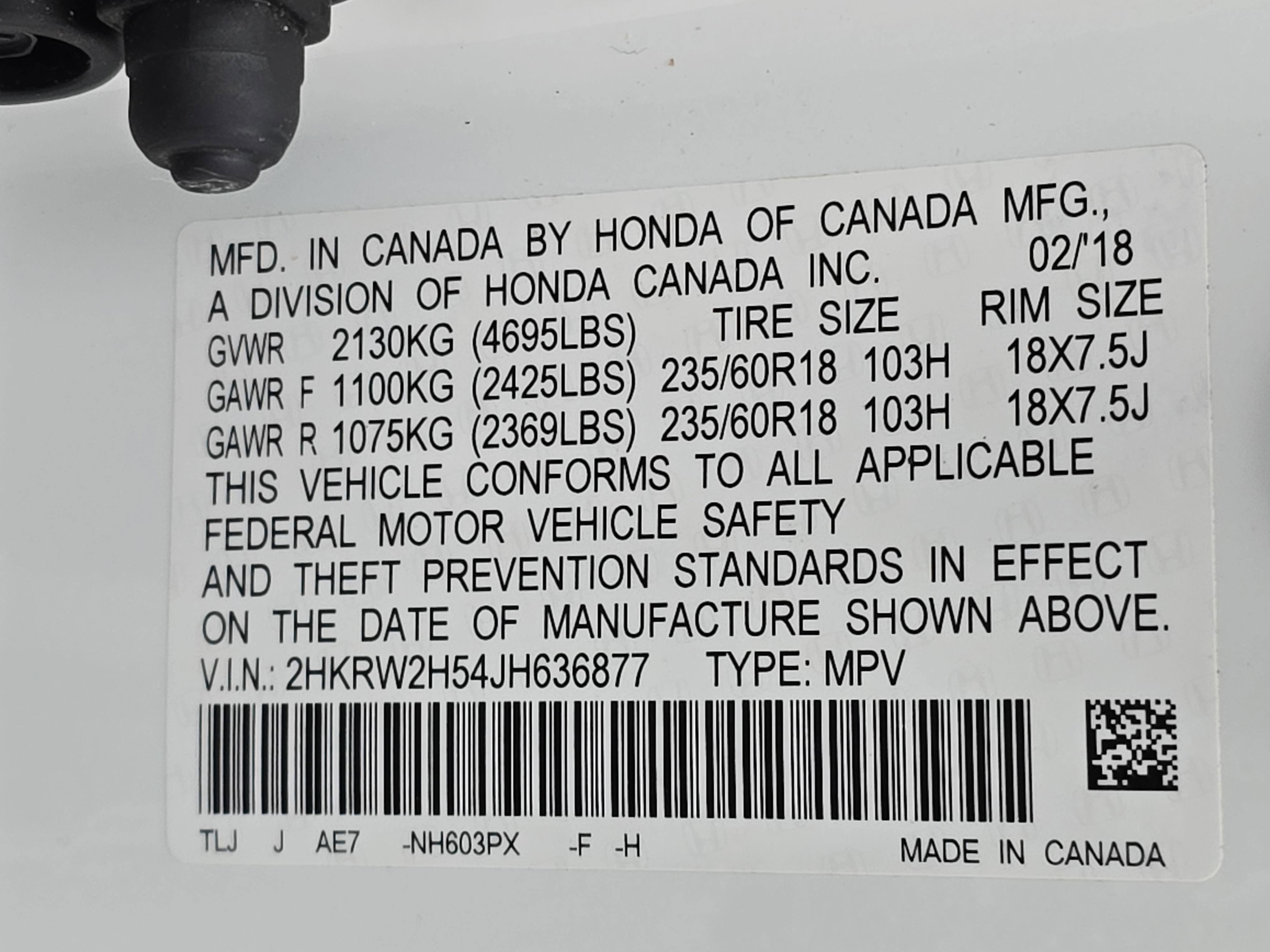 2HKRW2H54JH636877