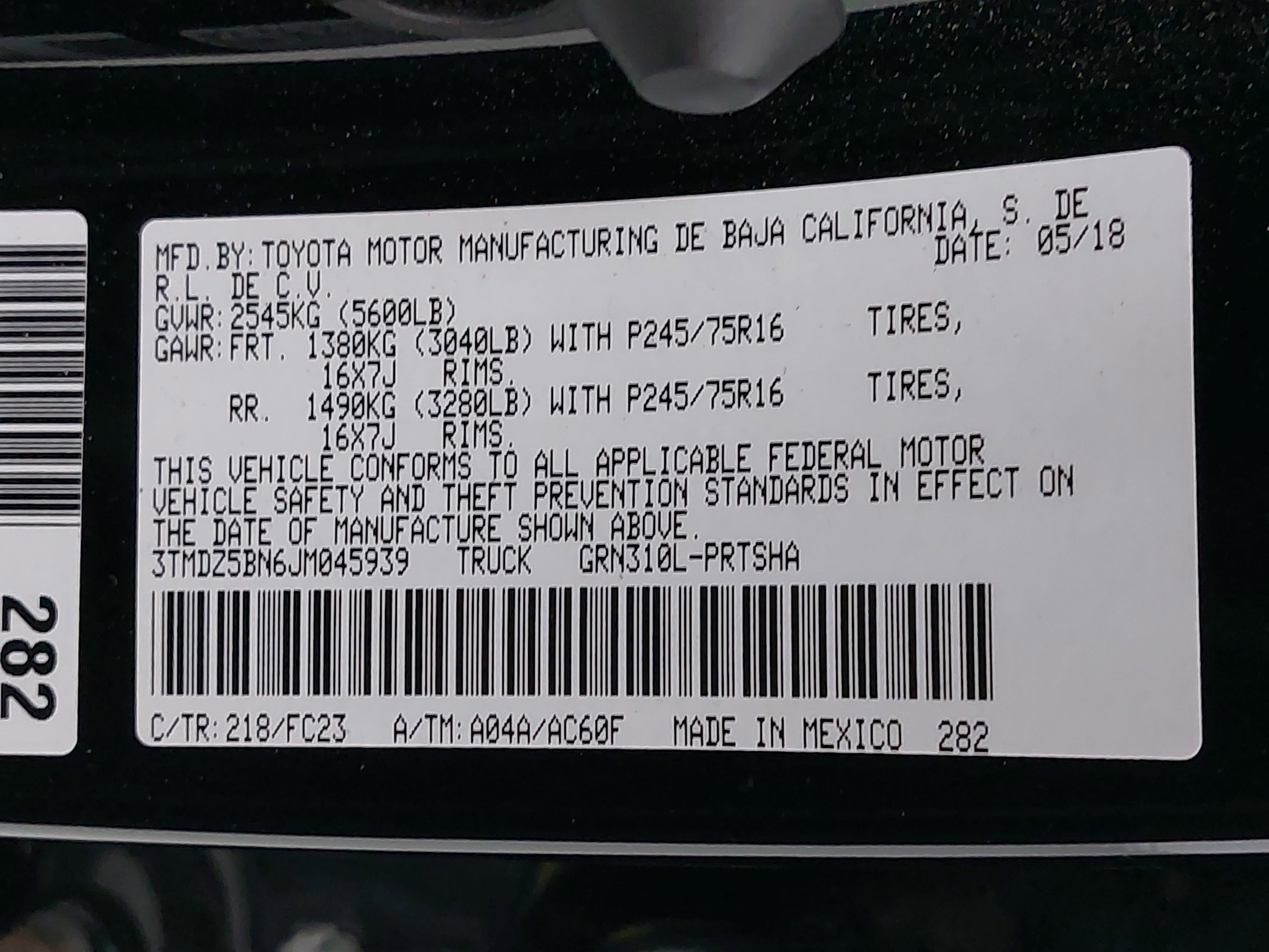 - Vehicle Name: Toyota Tacoma