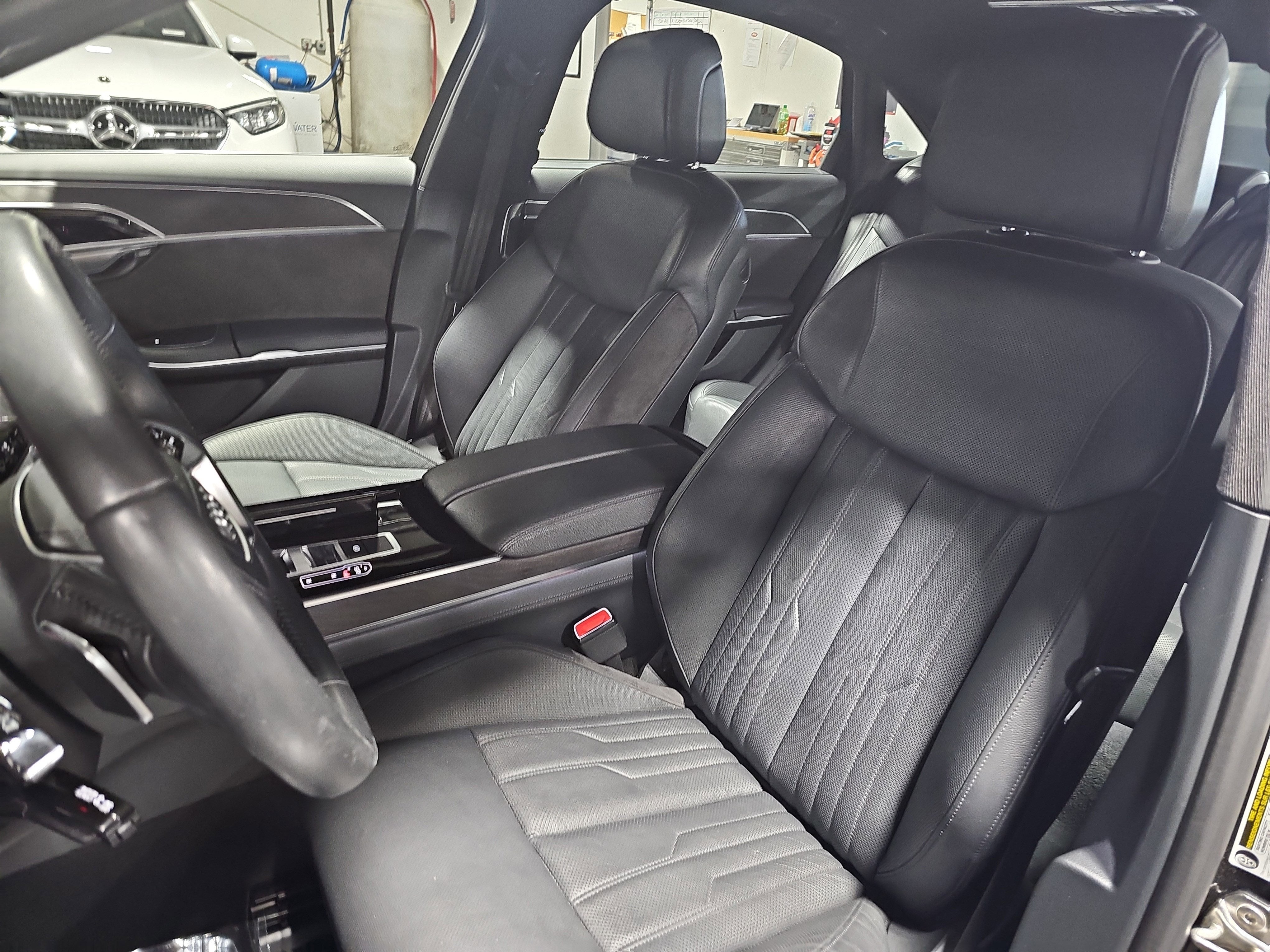 Mythos Black Metallic 2019 Audi A8 L 55 quattro 8-Speed Automatic with Tiptronic 3.0L V6 Turbocharged DOHC 24V ULEV II 335hp Black w/Valcona Leather Seat Upholstery, Acoustic & Break Resistant Dual Pane Glass, Adaptive Windshield Wiping System, Audi Head-Up Display, Audi Phone Box, Audi Pre Sense Basic & Rear, Audi Side Assist, Bang & Olufsen 3D Advanced Sound System, Chrome Exterior Package, Cold Weather Package, Executive Package, Full Leather Package, Heated 4-Spoke Multifunction Steering Wheel, Heated Front Surfaces, Heated Rear Outboard Seats, Navigation System, Top View Camera System, Ventilated Comfort Front Seats.At Mercedes-Benz of Raleigh, we are passionate about offering one of the most respected automotive brands in history. Mercedes-Benz of Raleigh is an authorized Sales & Service center, proud to showcase a 4.8+ out of 5-star rating thanks to reviews from our happy customers. Winners of Dealer Rater's Dealer of the Year and Consumer Satisfaction awards, the staff at Mercedes-Benz of Raleigh speaks French, Russian and Arabic as well as English and are ready to help you find your perfect new car. Recent Arrival! 19/27 City/Highway MPGCall 855-570-3271 today to schedule your test drive!