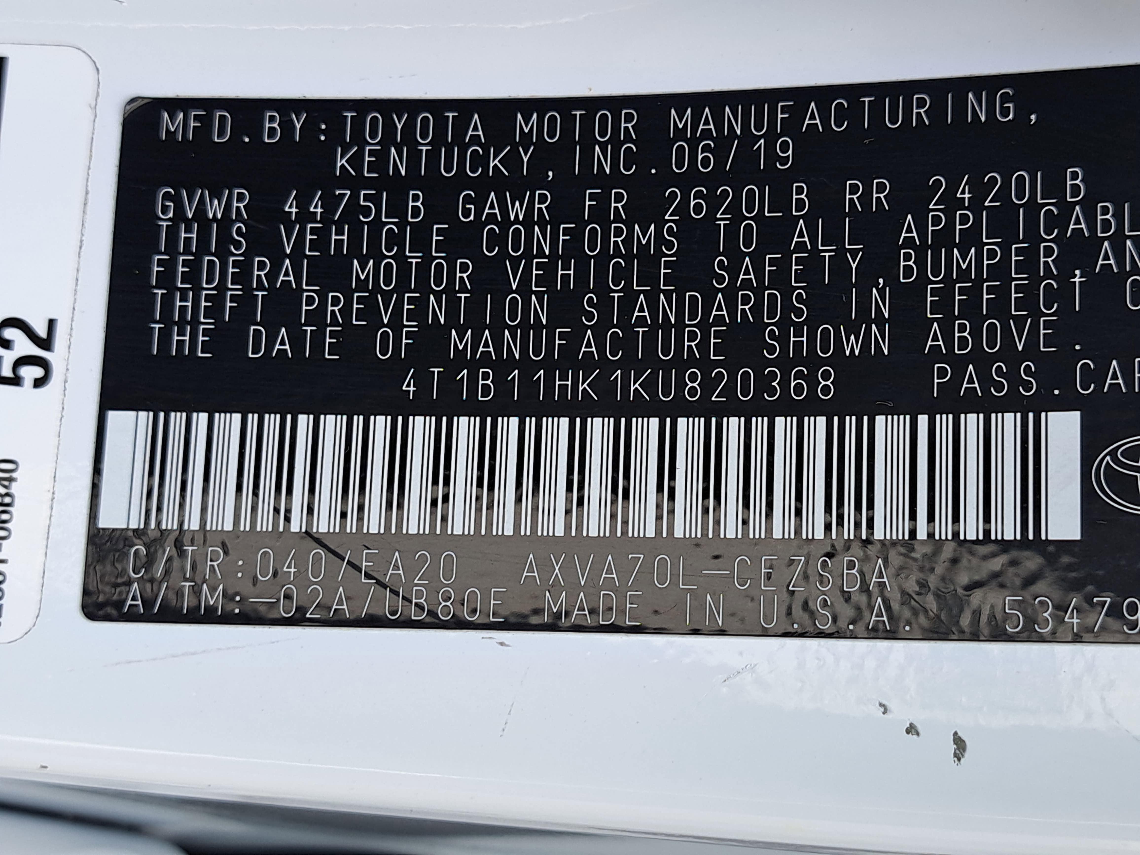 - Vehicle Name: Toyota Camry