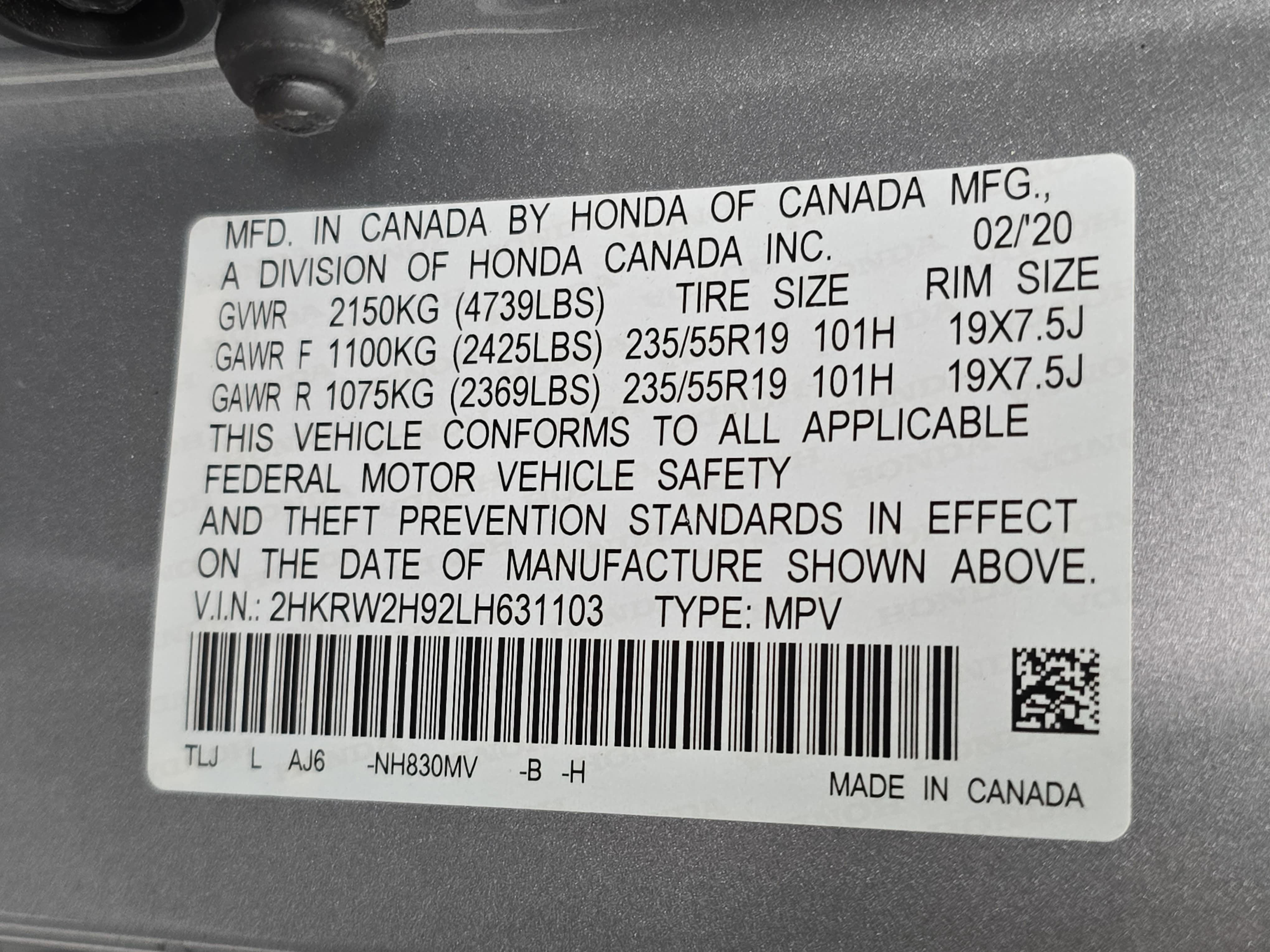 2HKRW2H92LH631103