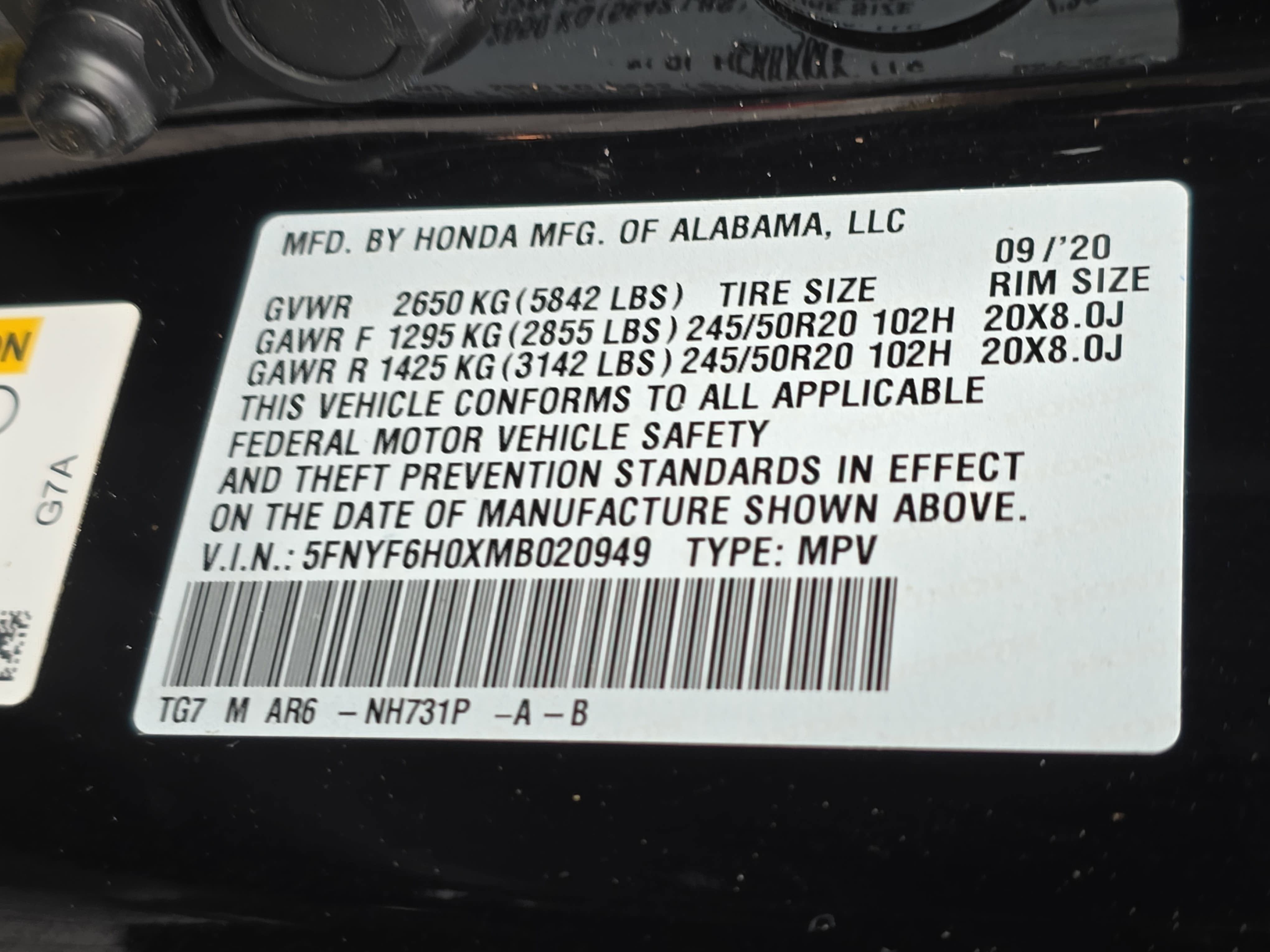 5FNYF6H0XMB020949