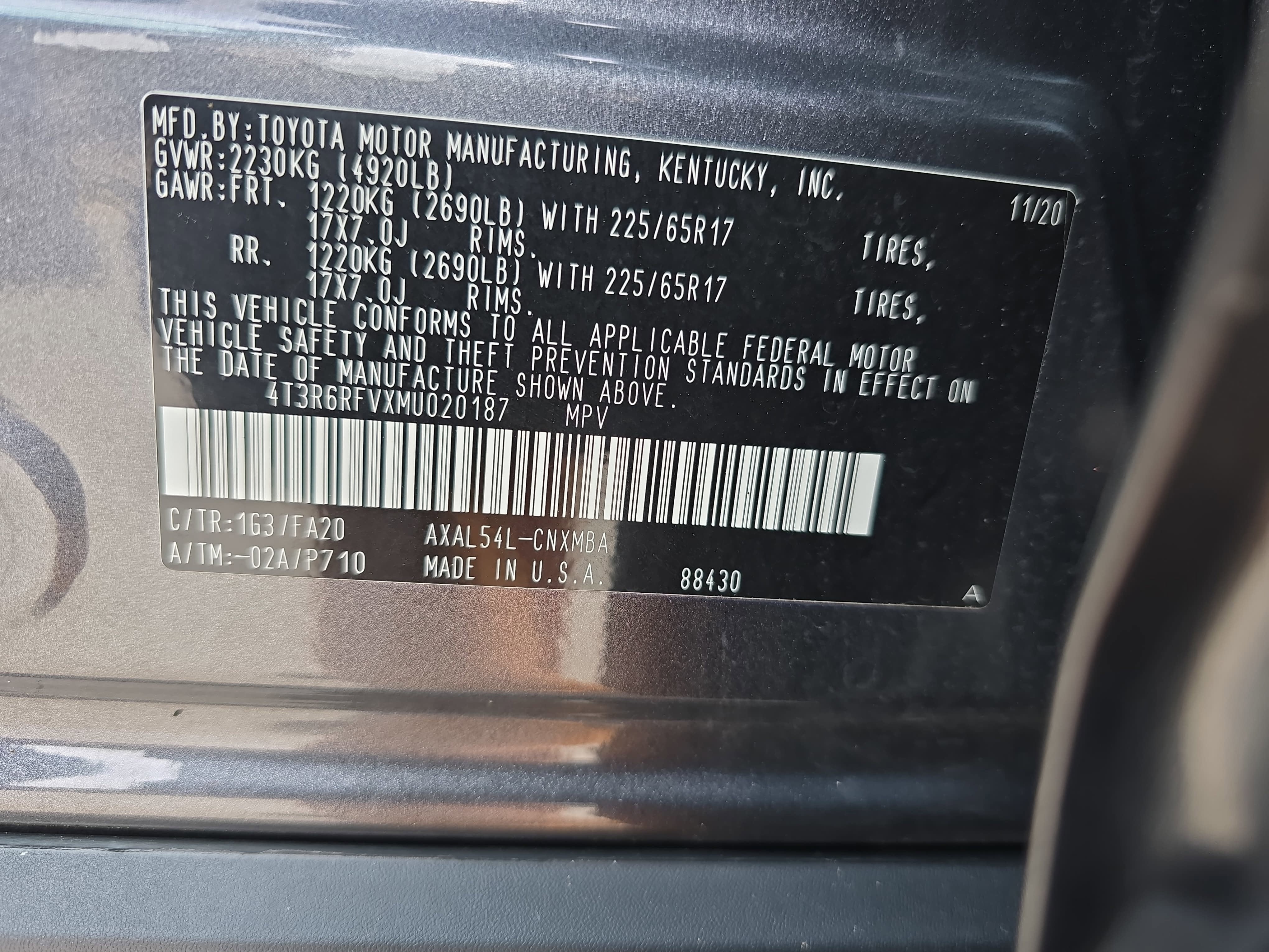 4T3R6RFVXMU020187