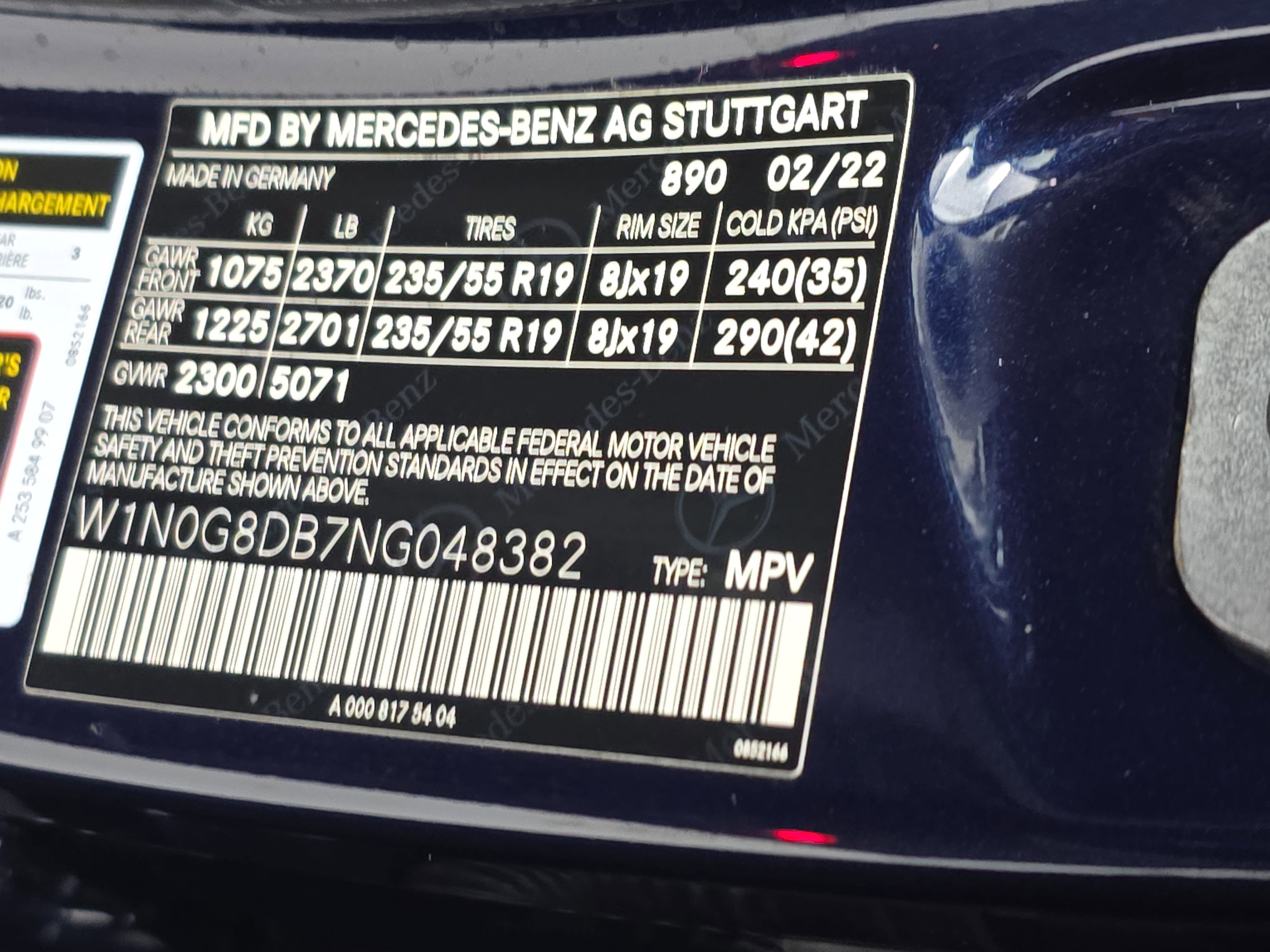 - Front Tire Size: P235/55HR19