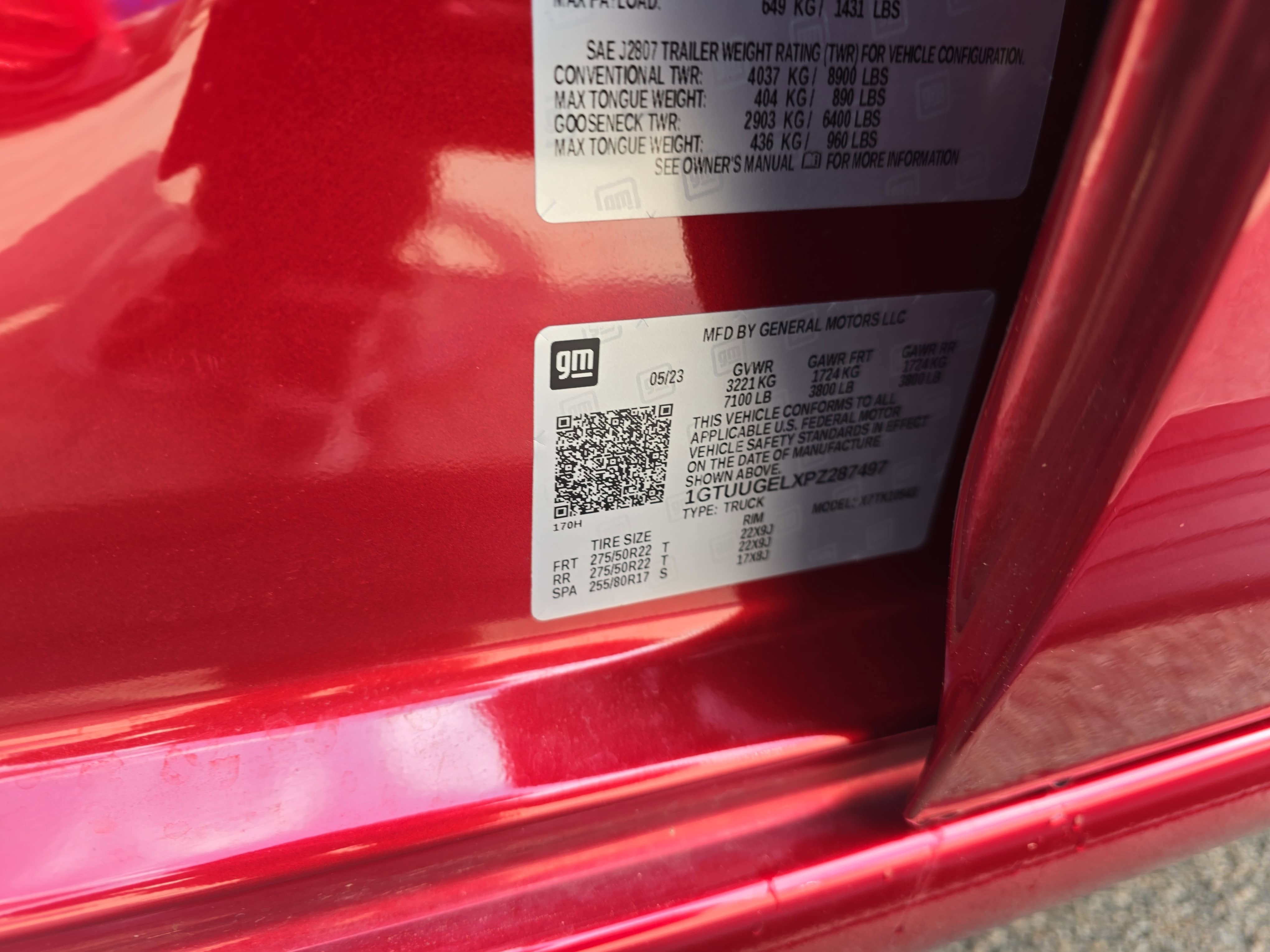 - Front Tire Size: 275/50R22SL