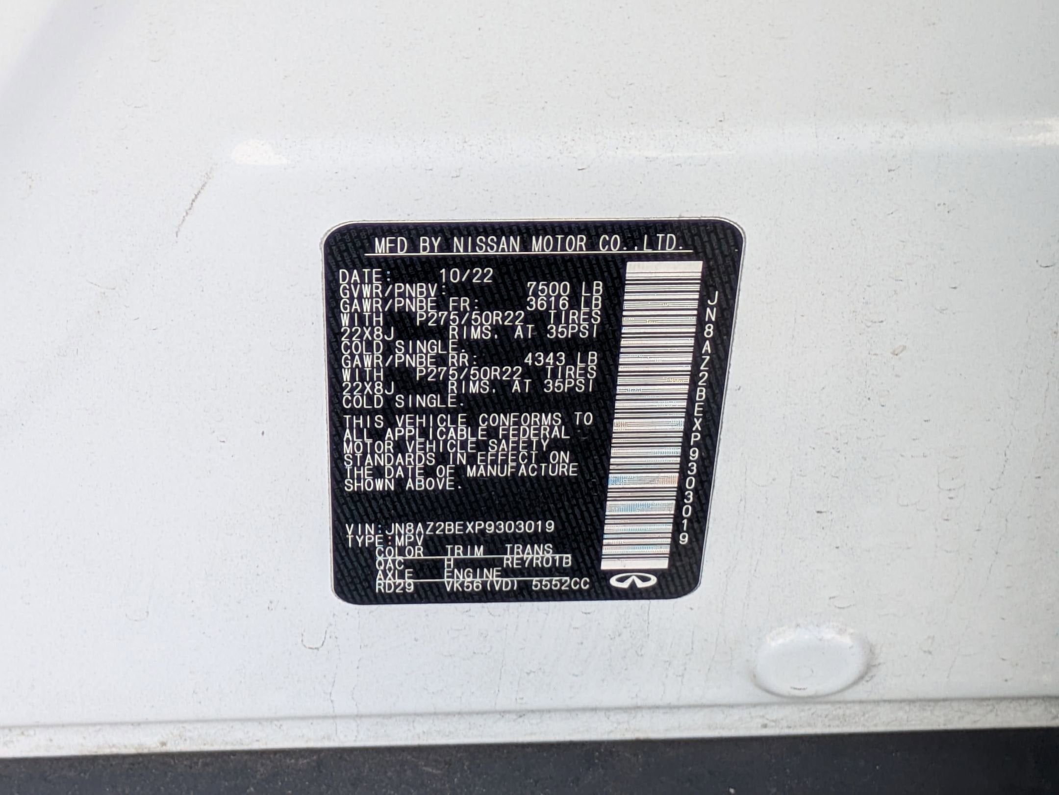 - Vehicle Name: INFINITI QX80