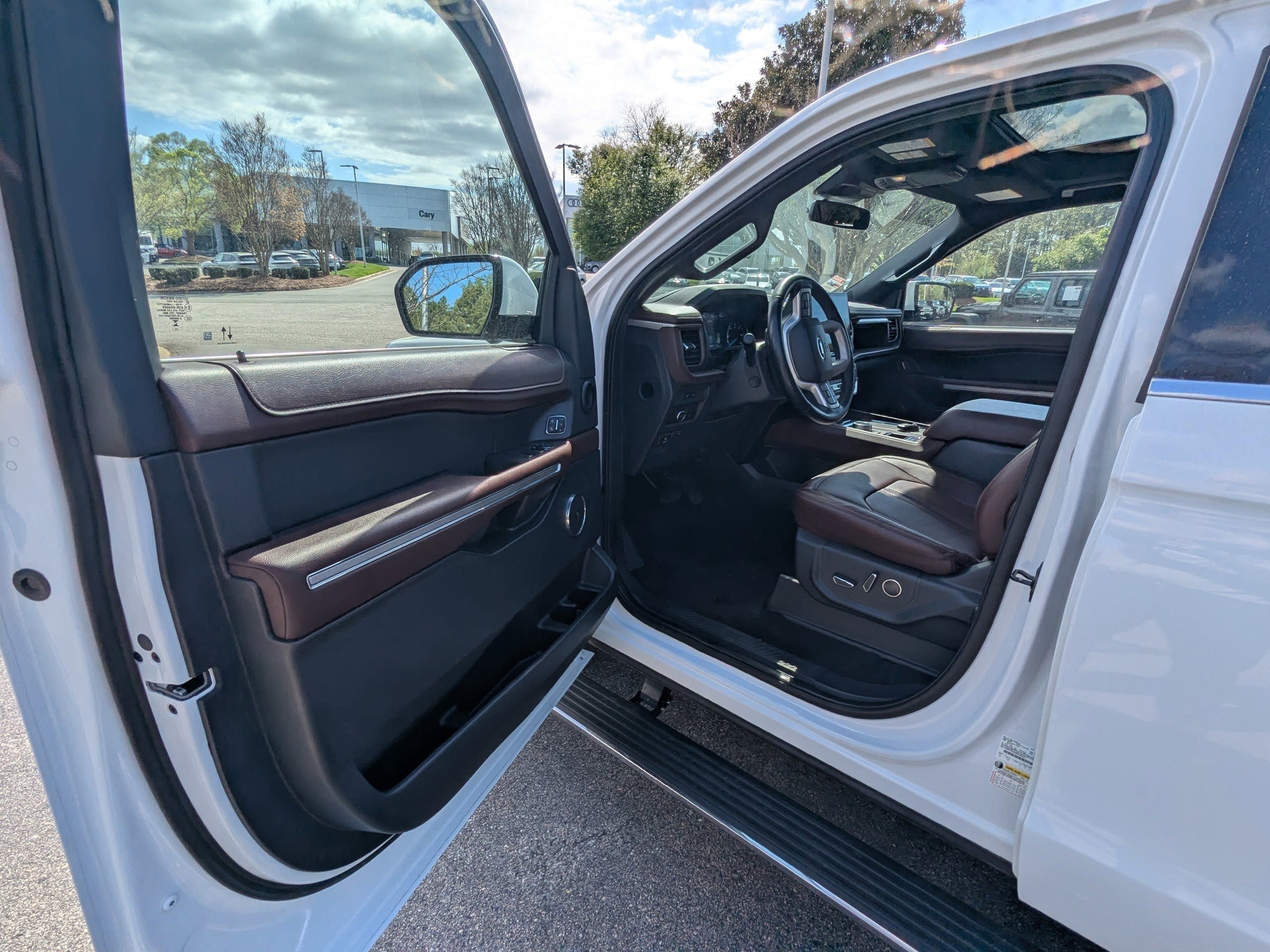 Oxford White 2024 Ford Expedition Limited RWD 10-Speed Automatic EcoBoost 3.5L V6 GTDi DOHC 24V Twin Turbocharged 12 Speakers, 3.31 Axle Ratio, 360-Degree Camera w/Split View, Adjustable pedals, Alloy wheels, Auto High-beam Headlights, Automatic temperature control, Brake assist, Delay-off headlights, Electronic Stability Control, Equipment Group 302A High Package, Exterior Parking Camera Rear, Front fog lights, Fully automatic headlights, Garage door transmitter, Heated & Ventilated Leather Front Captain's Chairs, Heated front seats, Heated rear seats, Heated steering wheel, Heavy-Duty Independent Suspension, Magnetic-Painted Power Deployable Running Boards, Memory seat, Navigation system: Connected Navigation, Outside temperature display, Panic alarm, Pedal memory, Power driver seat, Power Liftgate, Power moonroof, Power-Folding Sideview Mirrors w/Autofold, Radio: B&O Sound System by Bang & Olufsen, Rain sensing wipers, Rear air conditioning, Rear window wiper, Reclining 3rd row seat, Security system, Speed control, Speed-Sensitive Wipers, SYNC 4 w/Enhanced Voice Recognition, Variably intermittent wipers, Ventilated front seats, Wheels: 22 12-Spoke Polished Aluminum.Odometer is 20933 miles below market average!Our expert sales staff will help you find the perfect vehicle for your lifestyle. AutoPark is the leading Chrysler/Jeep dealership in the Raleigh, Durham, and Garner area, offering excellent customer service, a friendly environment, attractive financing options, and great cars!