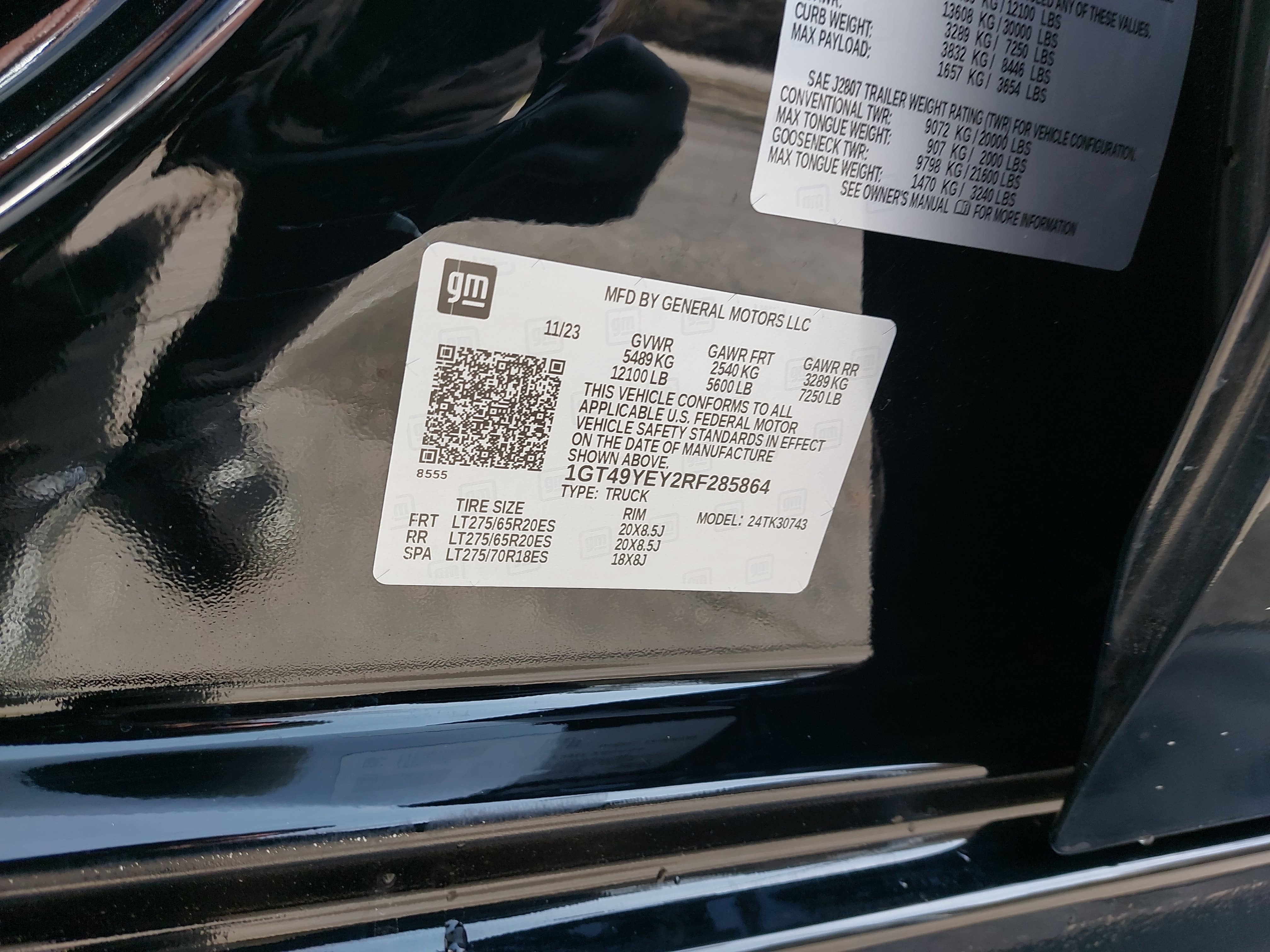 - Tire, spare LT275/70R18 all-terrain, blackwall (Included and only available with (QF9) LT275/65R20 all-terrain, blackwall tires on single rear wheel models.)