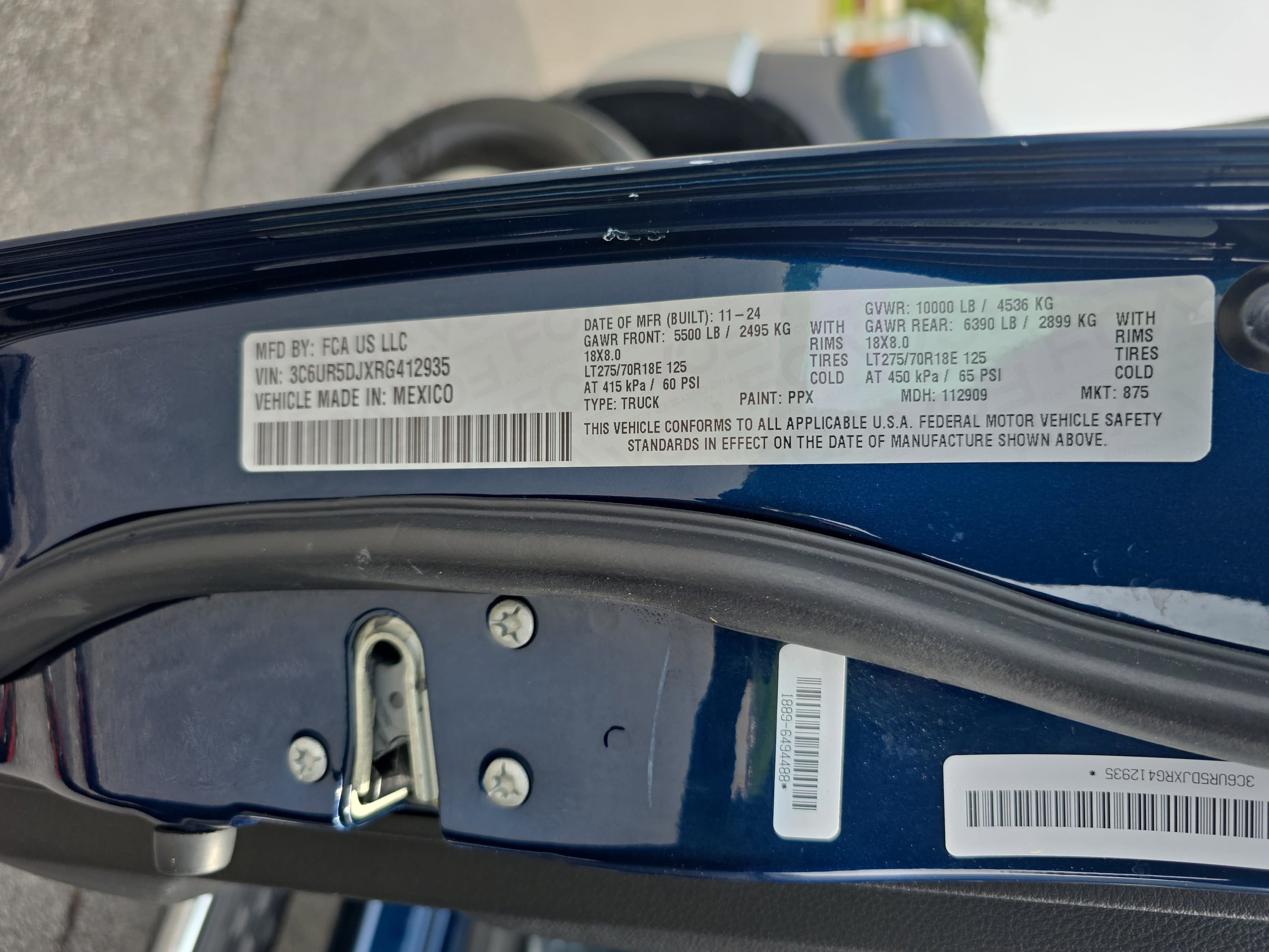 - Rear Tire Size: LT275/70SR18