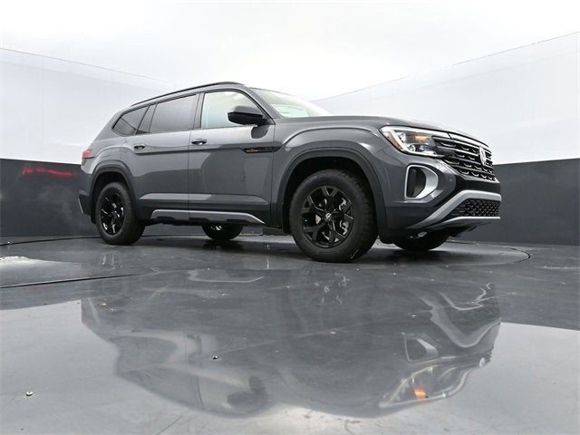 New Price! Pure Gray 2025 Volkswagen Atlas 2.0T Peak Edition AWD 8-Speed Automatic 2.0L TSI 18 black painted 5-spoke alloy wheels, 3rd row seats: split-bench, Auto High-beam Headlights, Exterior Parking Camera Rear, Fully automatic headlights, heated and Actively ventilated front bucket seats, Heated door mirrors, Heated steering wheel, MIB3 composition media radio, perforated V-Tex leatherette seating surfaces, Power driver seat, Power Liftgate, Power moonroof: Panoramic, Rain sensing wipers.